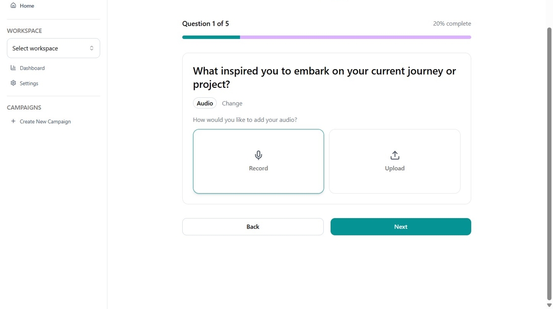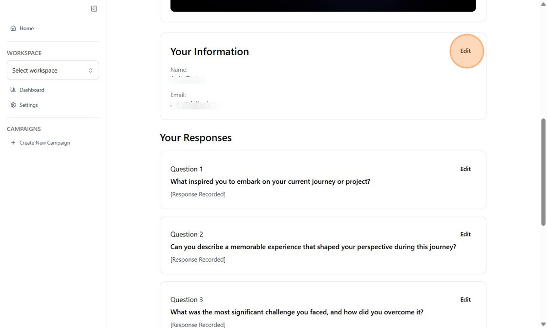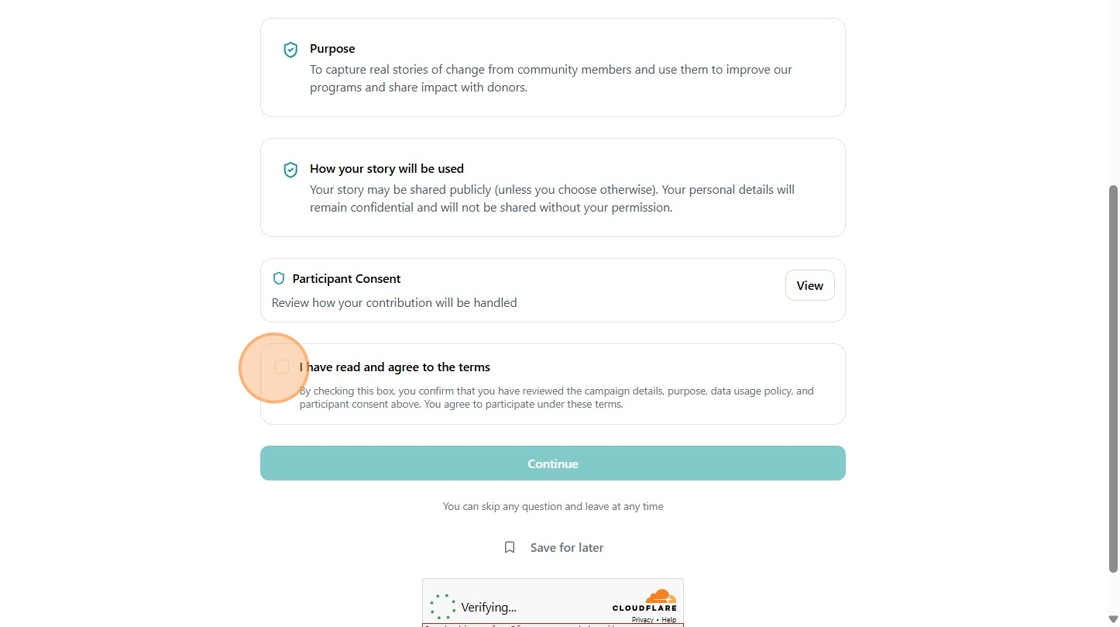 When you are invited to a campaign, you can share your response in a range of formats, including video, audio, images, or text. Before submitting, you will review your answers and confirm your privacy and consent preferences.