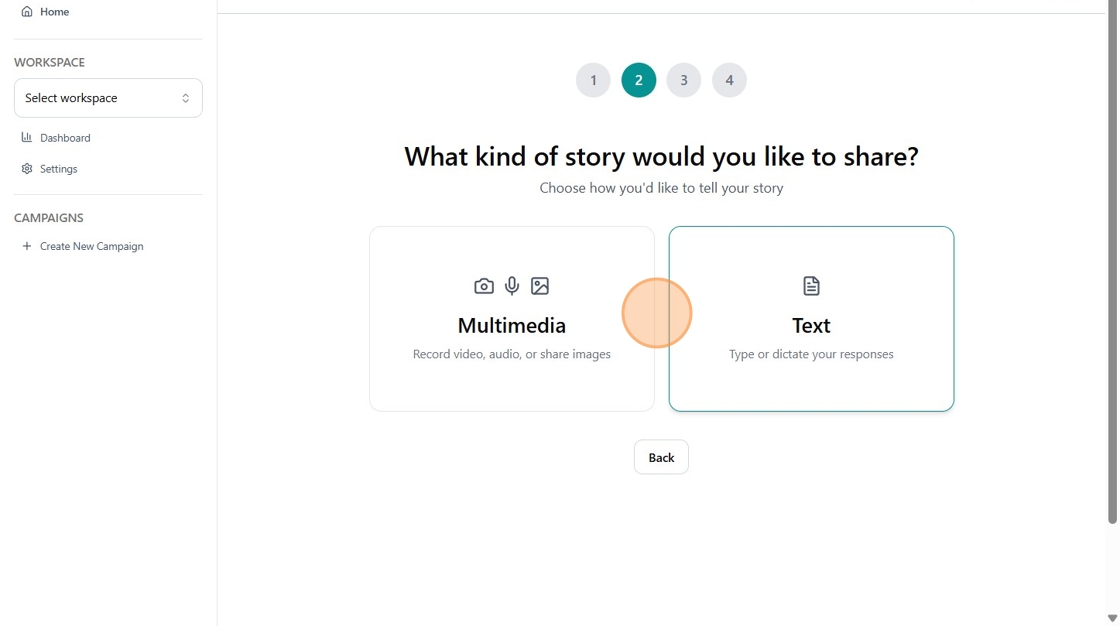 - For each campaign question, choose whether to respond using Multimedia or Text format.