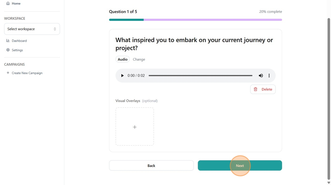 - to save it and move to the following question. Repeat for each question in the campaign.