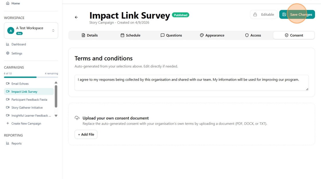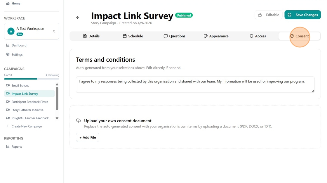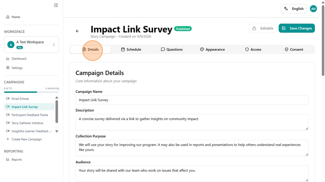 A guide for campaign creators and workspace members who'd like to adjust campaign details, schedule, questions, and consent form after a campaign has been created.